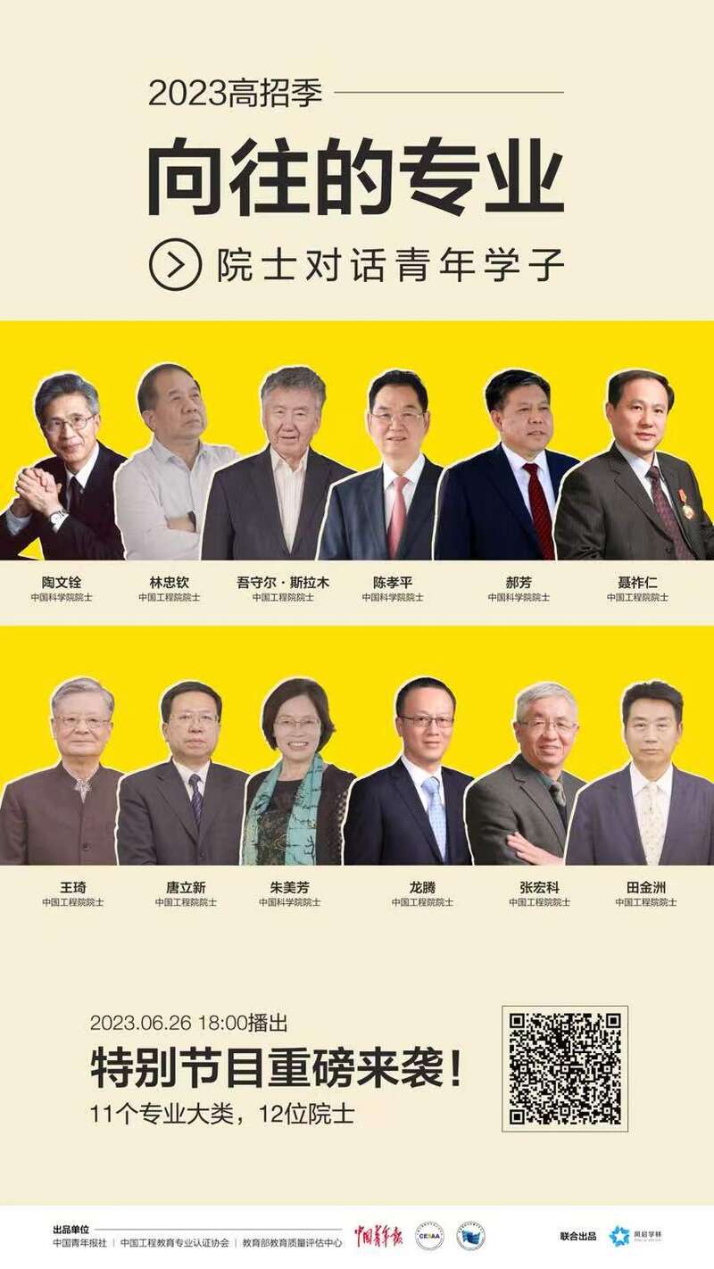 这是一档由中国青年报社、中国工程教育专业认证协会、教育部教育质量评估中心等单位联合打造的高水平、高品质、高影响力的专业解读节目。节目邀请了12位院士,分别从能源动力类、电子信息类、机械工程类、地质类、临床医学类、中医学类、仪器类、计算机类、材料类、自动化类、纺织类等11个专业大类,为广大考生和家长提供权威、全面、实用的专业指导。