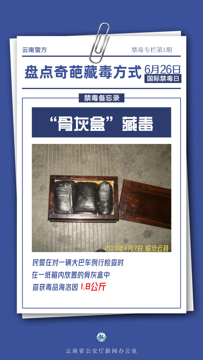 中国青年报客户端讯(王婷 中青报·中青网记者张文凌)洋葱藏毒、书本藏毒、瓷器藏毒、核桃藏毒、火龙果藏毒、棺材藏毒、骨灰盒藏毒……毒贩为了铤而走险牟取暴利,藏毒方式五花八门。近日,云南禁毒民警盘点了工作中遇到的多种“奇葩”藏毒方式,警方@所有毒贩,警方已掌握这些藏毒方式,犯罪分子逃不过禁毒民警的火眼金睛。