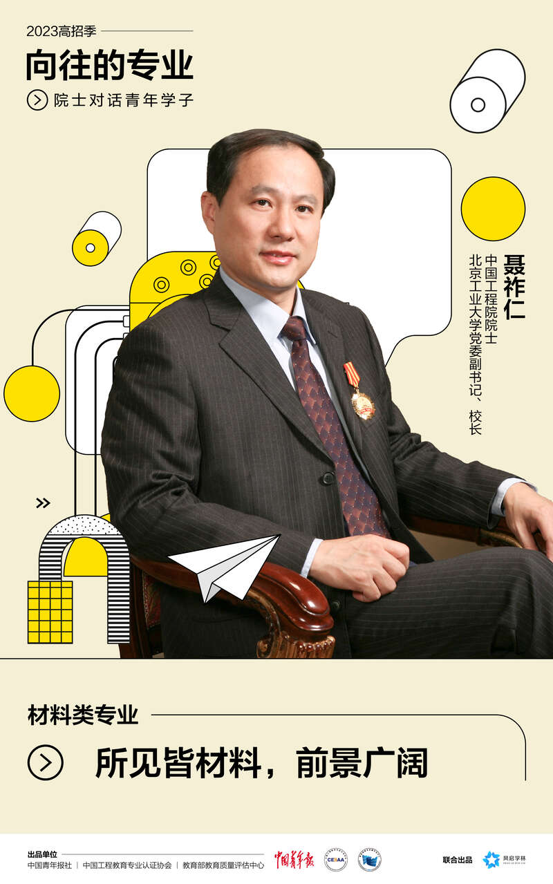 又是一年高考季,在2023年高招季《向往的专业·院士对话青年学子》特别节目中,中国工程院院士,北京工业大学党委副书记、校长聂祚仁与青年学子共话材料类专业。