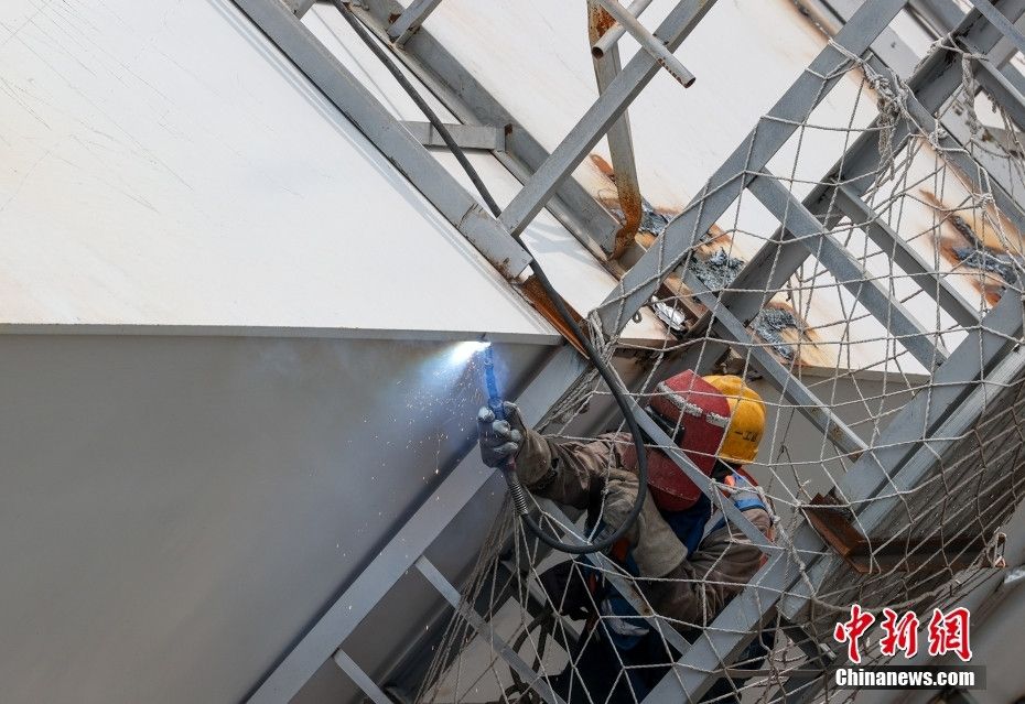 6月26日,位于北京永定河畔的京雄高速公路全线重点控制性工程——京雄大桥完成所有钢结构焊接施工,拱肋受力体系初步形成,主体结构完工进入倒计时,为京雄高速全线通车奠定了基础。图为工人进行焊接作业。