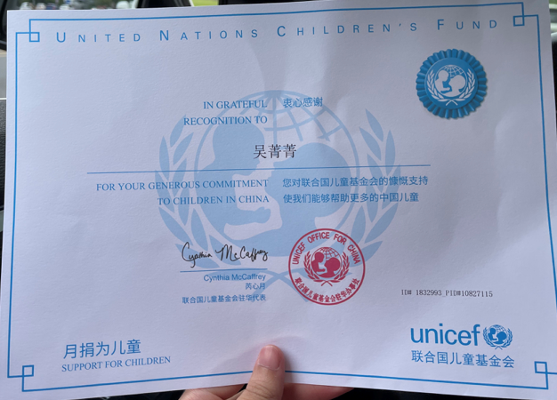 定期给联合国儿童基金会捐款