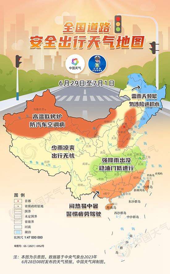 近期,北方有连续高温炎热天气,南方有暴雨来扰,可能给大家的出行带来不利影响。有自驾出行计划的朋友请及时关注交通路况信息,合理安排出行时间,提前规划并熟悉路线,安全平安出行。