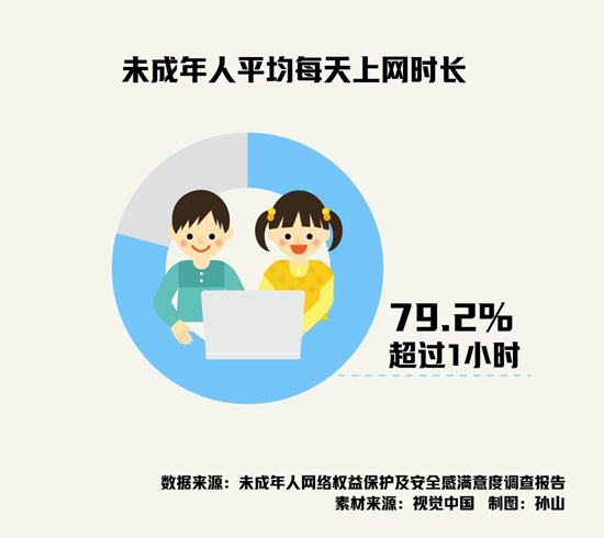 互联网已经成为未成年人学习、生活的重要工具,未成年人也越来越离不开网络。《未成年人网络权益保护及安全感满意度调查报告》显示,67.69%的受访者表示家中存在未成年人上网的情况,79.2%的受访未成年人每天上网超过1小时。64.98%的受访者认为应加强未成年人网络信息辨别能力培养。