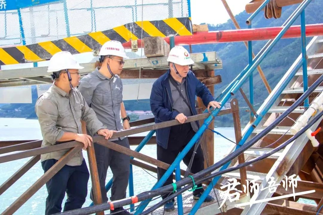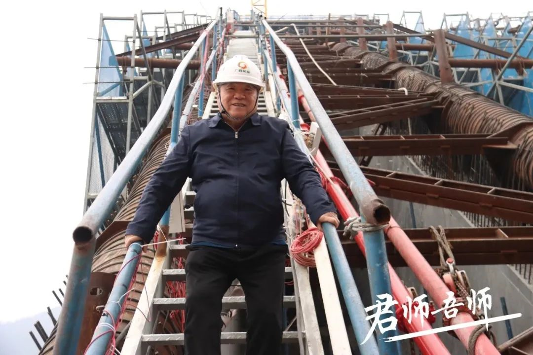 尽管经历过修桥铺路大风大浪的他已无畏无惧,但对建造每一座桥梁他都未曾有过丝毫的掉以轻心,因为他深知在建设过程中会遭遇天气、操作等诸多不可控因素。而浔江两岸特殊地质结构所导致的一系列建设难度,更使他慎之又慎。多少次烈日之下的现场指挥和勘察,工地200米高的吊扣塔,地下20多米深的桥台基面,这些非专业人员不敢轻易问津的“高危工具”他却无畏无惧、坦然上下。不在现场时,更是每天都要致电工程负责人仔细了解情况,千叮咛万嘱咐。对每一道工序、每一个建设环节都是完善了再完善,每一个操作流程都是模拟了再模拟,他呕心在桥梁建设的日日夜夜。