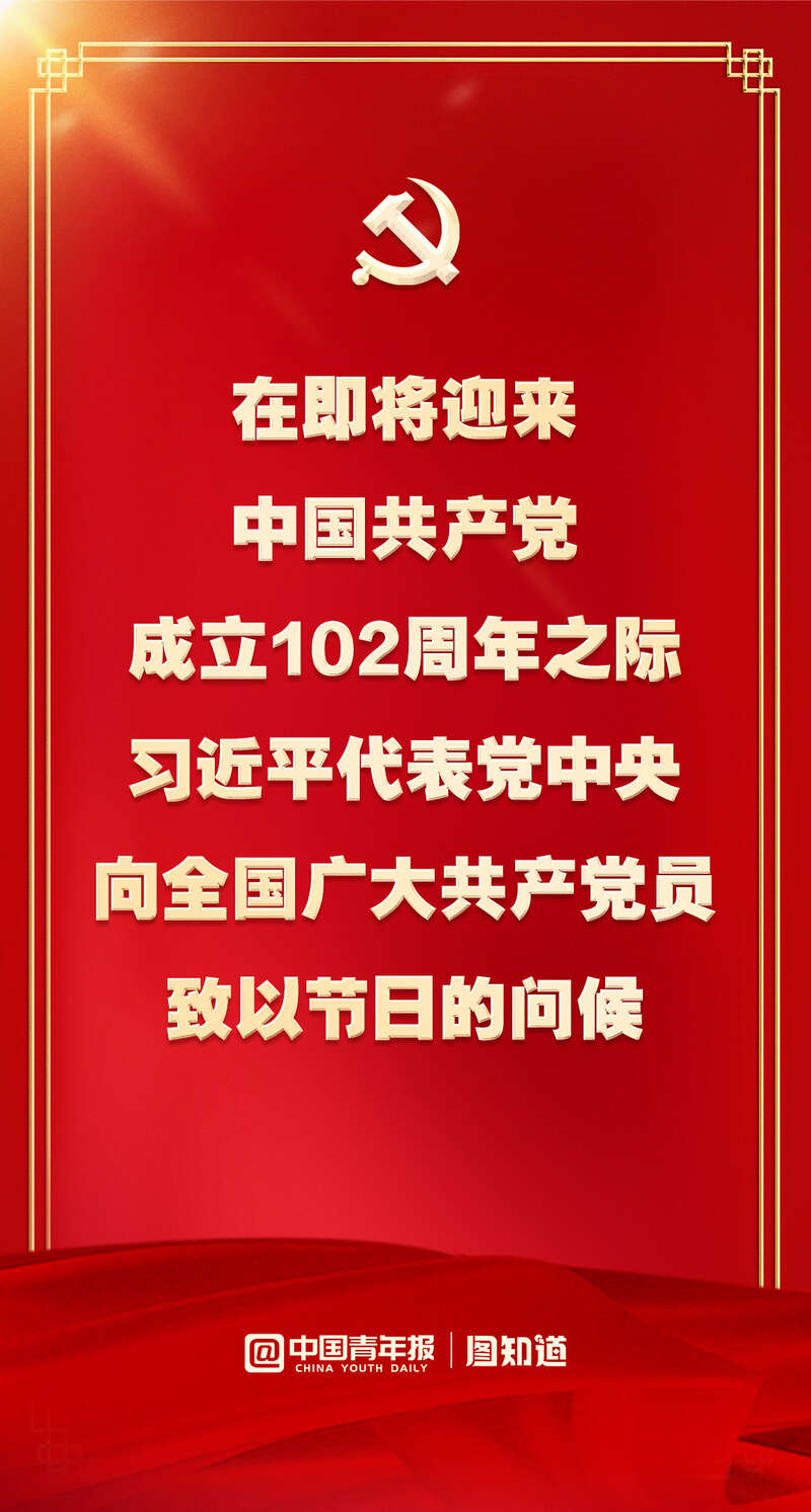在即将迎来中国共产党成立102周年之际,习近平代表党中央,向全国广大共产党员致以节日的问候。