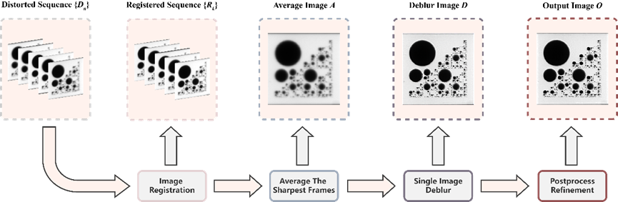 “大气湍流校正”赛道由普渡大学智能成像实验室发起,吸引了世界各地40支参赛队伍参加,比赛围绕“远距大气湍流扰动下目标识别”主题,设置两个子赛道:大气湍流下文字识别、大气湍流下编码靶标识别。VIELab-HUST参赛队伍提出了一种模型与数据联合驱动的大气湍流校正复原框架,先通过多帧配准自适应融合校正图像畸变,进而通过神经网络模型校正图像模糊,实现远距湍流图像畸变与模糊退化效应校正,在两个子赛道都取得了冠军。