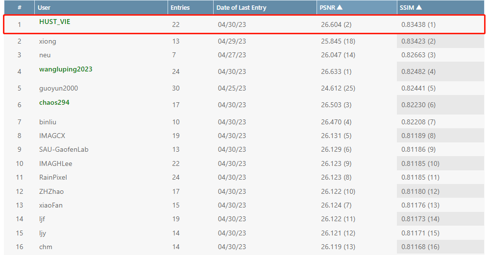 参赛队伍HUST_VIE,斩获了UG2+“单帧图像去雨”赛道全球冠军