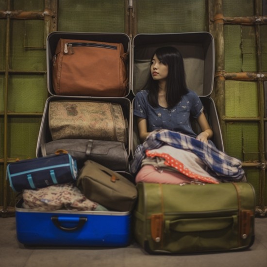 作品围绕在大城市中缺乏归属感的“校漂族”“杭漂族”群体展开了一系列视觉化表达。作者选取了6位受访者的真实生活环境进行拍摄,并从自己的理解出发,对“漂泊感”进行了一系列超现实的想象,如行李箱中的女孩、布满气球的房间等,用人工智能技术生成虚拟图像。