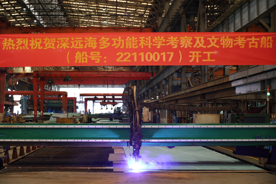 你听说过在海上的科考与考古吗?由海南省人民政府、三亚崖州湾科技城开发建设有限公司联合国家文物局、中国科学院深海科学与工程研究所出资建造的深远海多功能科学考察及文物考古船,在中国船舶集团旗下的广船国际有限公司厂区开工建造啦!快跟随萌主一起,见证这艘集科考与考古一身的 “重器” 开工现场吧!