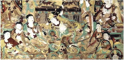 敦煌壁画《观无量寿经变》表现了唐朝宫廷燕乐的表演情形