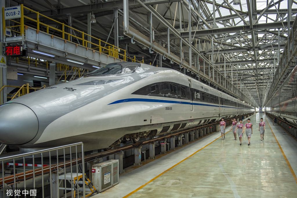 2023年6月30日,成都,于7月1日开行的蓉港高铁G2963次首发列车乘组在中国铁路成都局集团公司成都动车段集体亮相。该乘组由司机、乘务员、随车机械师组成,列车采用CRH380A型动车组重联开行。 中新社记者 刘忠俊 摄