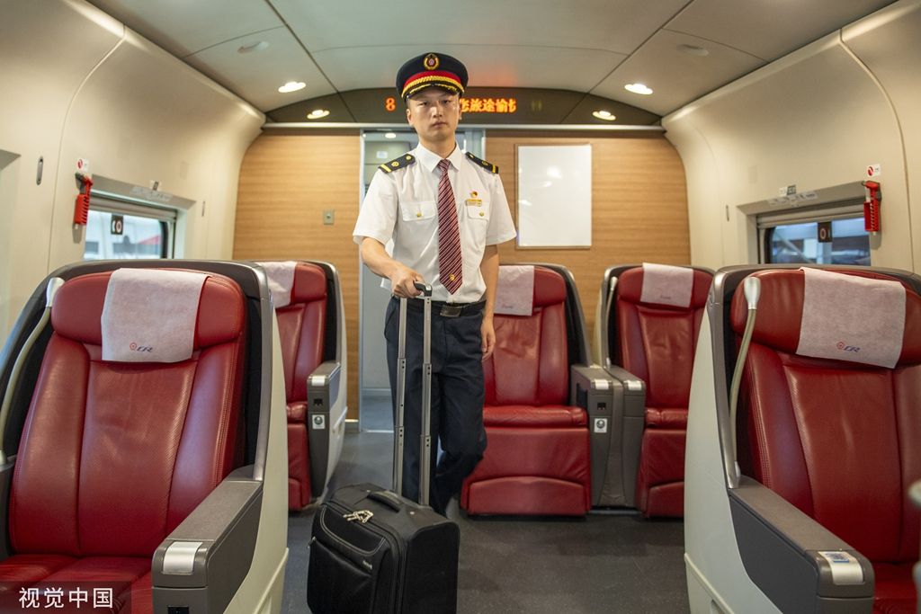 2023年6月30日,成都,蓉港高铁首发车司机冯帅。当日,于7月1日开行的蓉港高铁G2963次首发列车乘组在中国铁路成都局集团公司成都动车段集体亮相。该乘组由司机、乘务员、随车机械师组成,列车采用CRH380A型动车组重联开行。 中新社记者 刘忠俊 摄