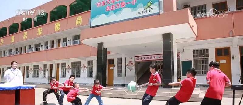 这是6月初,科普大篷车进入固始乡镇小学的现场,孩子们目睹了化学反应的“奇妙”之处,体验了无处不在的大气压究竟有多大“威力”。书本里的科学知识照进了现实,引来孩子们一阵阵掌声。