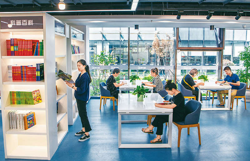 它的空间设计时尚化,汇聚了生活化、人性化、生态化、智能化和国际化等都市文化休闲的特征,体现出人、书、空间与生活的四维融合;