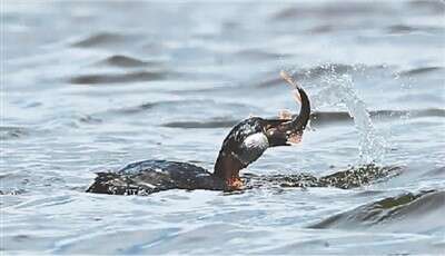 参赛队员捕捉到的赤颈鸊鷉捕鱼场景。惠 营摄