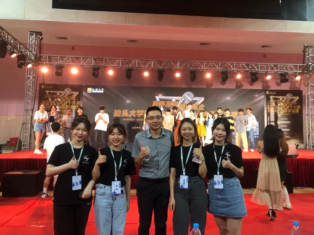 (梁晟与校学生会的指导老师和同学们)