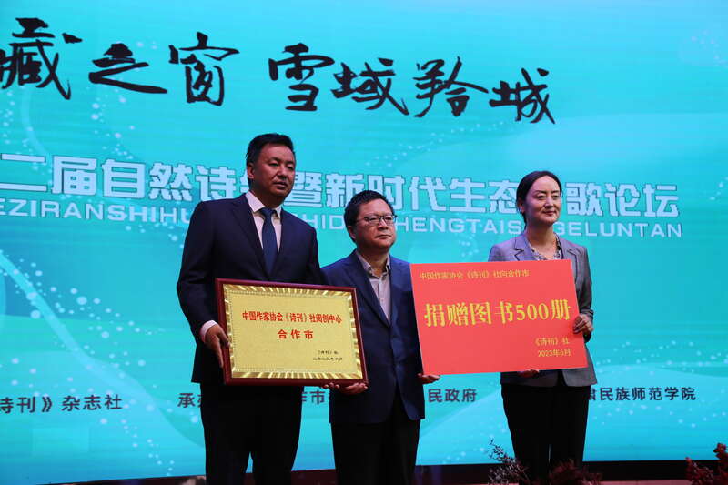 开幕式现场,李少君为合作市授“中国作家协会《诗刊》社阅创中心”铭牌,并赠送图书。在随后举办的新时代生态诗歌论坛上,李少君、甘肃省文联副主席王正茂、中国诗歌学会副会长曹宇翔、重庆市作家协会副主席李元胜、甘肃省作家协会副主席娜夜等与会嘉宾、诗人,就“新时代生态诗歌”主题进行探讨。