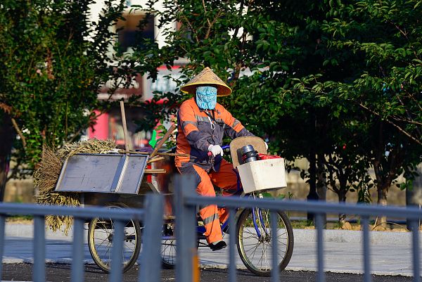 近期全国多地夏日炎炎,在室内吹吹空调、喝点冰镇饮料,是不少人的“自动选择”。但有些人却无法享受这样的“待遇”,他们的合法权益与身心健康,不应被人们忽视——他们就是在酷暑之下,仍坚守在街头工作的环卫工人。