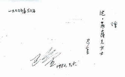 巴金赠送给菲萨克的亲笔签名。