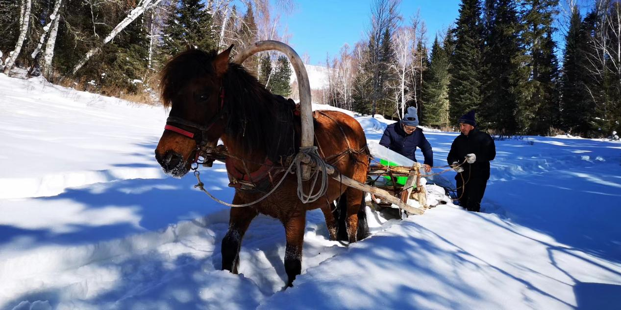 2019年2月,当时硕士二年级的江西人向丽雄和同学也来到了铁外克湖进行野外考察。这是他第一次到新疆,第一次见这么大的雪,第一次骑马,第一次坐马拉雪橇。“带着设备上山非常困难,还是没有路,好在当地牧民帮了大忙,把我们送了上去”。