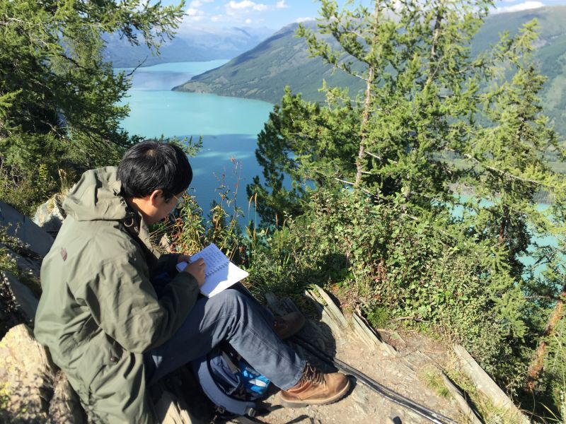 早在2011年,黄小忠野外考察时来到新疆最北端、阿尔泰山南麓友谊峰冰川下喀纳斯湖。这里是辽阔草原和荒凉戈壁交界线,湖形狭长,森林茫茫,以往做干旱区绿洲型湖泊研究的黄小忠发现这里的地下沉积物植物残体保留更为丰富,沉积环境比较稳定,他希望通过孢粉(植物孢子和花粉的总称)测量研究分析当地古环境变化。
