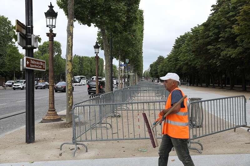 △当地时间7月5日,香榭丽舍大道周围设置金属防护栏。
