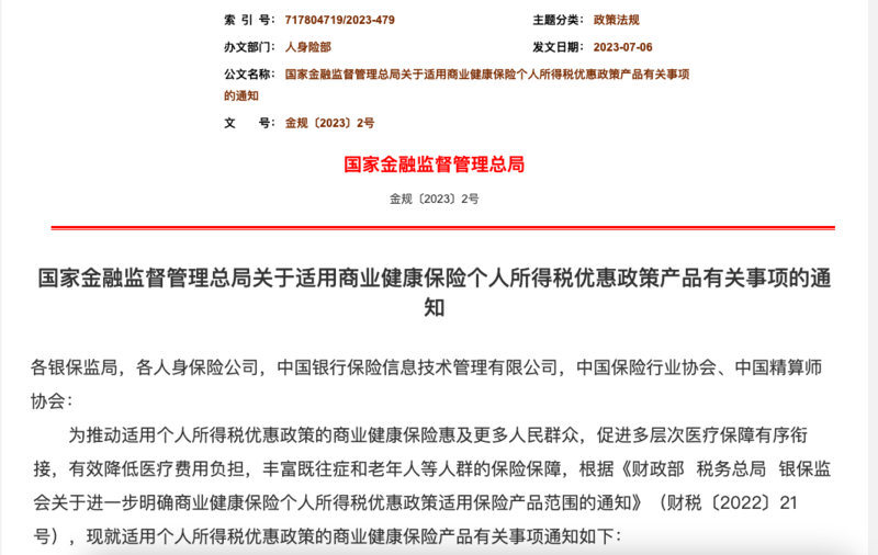 中国青年报客户端北京7月6日电(中青报·中青网记者 王林)国家金融监督管理总局今天发布《关于适用商业健康保险个人所得税优惠政策产品有关事项的通知》(以下简称《通知》),将适用个人所得税优惠政策的商业健康保险产品范围扩大至医疗保险、长期护理保险和疾病保险等商业健康保险主要险种,增加了产品保障内容,提高了灵活性。