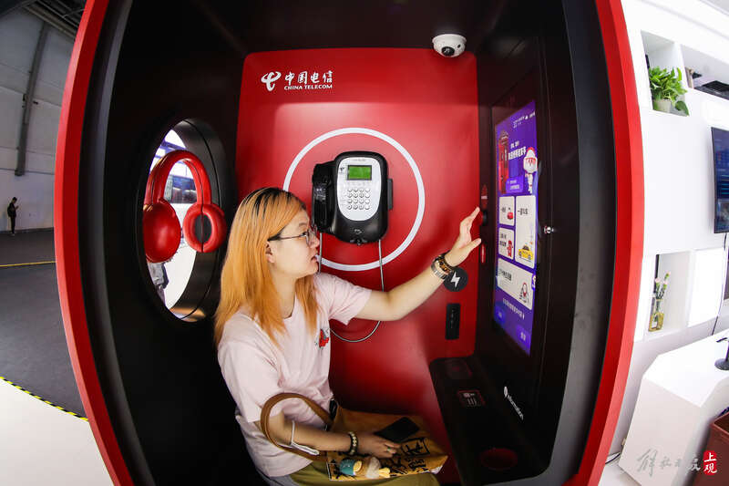 中国电信数字电话亭让“老古董”持续焕发新活力,红色电话亭上线了一键叫车、免费充电、三分钟免费通话、预约就医等多项便民服务。