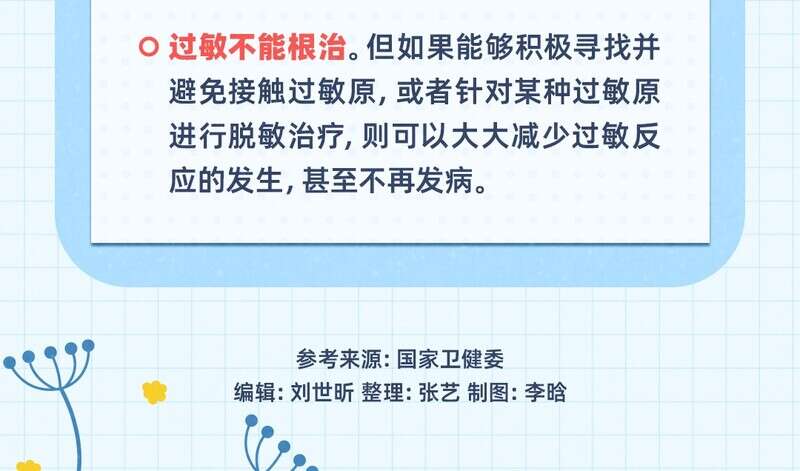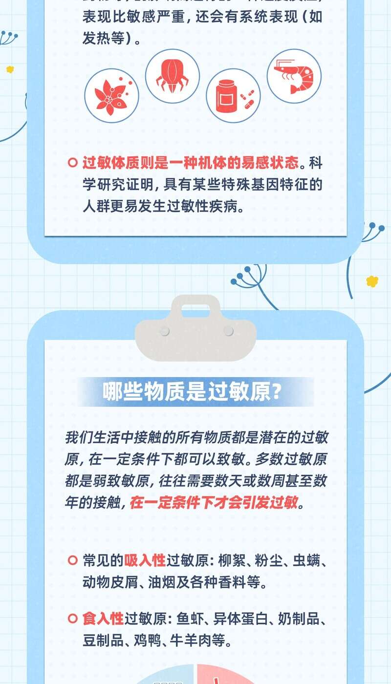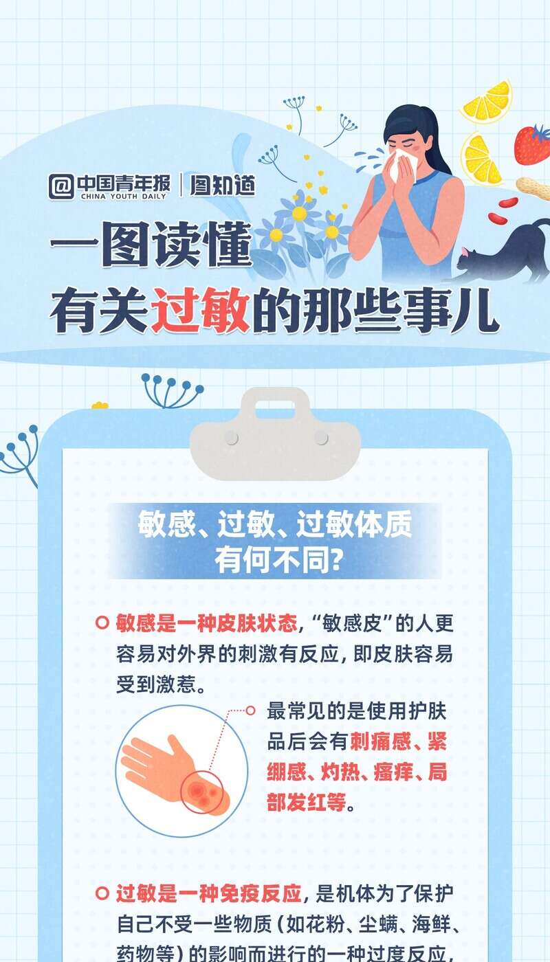 提到过敏,大家并不陌生。我国的过敏患者是个不小的群体。世界卫生组织将过敏性疾病列为21世纪重点防治的三大疾病之一。生活中会遇到哪些过敏原?又该如何预防?今天是世界过敏性疾病日,带你一图读懂关于过敏的那些事儿。