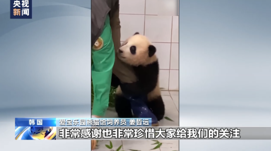爱宝乐园熊猫馆饲养员 姜哲远:没想到中国的年轻人会给我们这么多关爱,非常感谢也非常珍惜大家给我们的关注。我能做的事情其实就是像现在这样,让福宝继续茁壮成长。