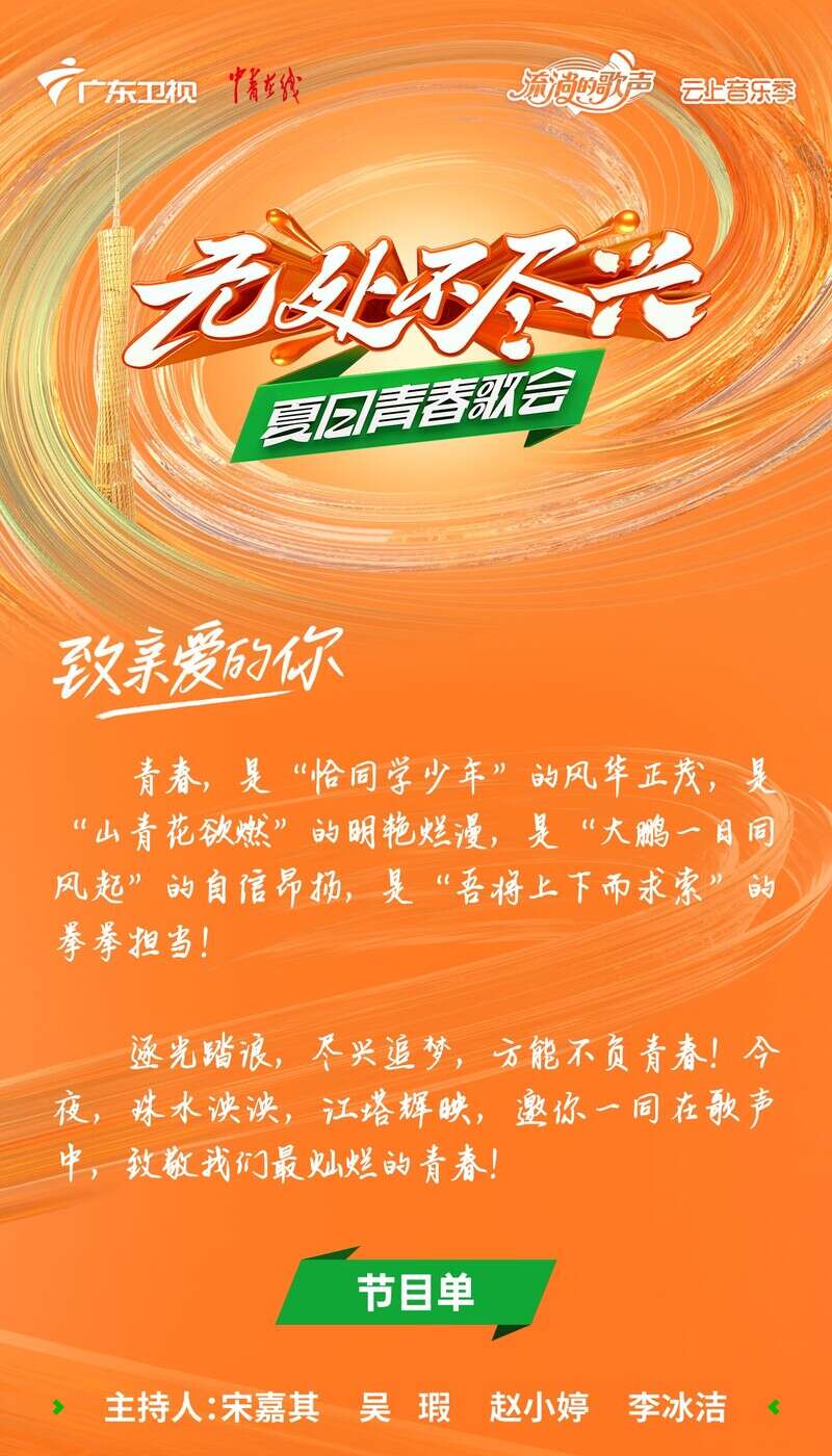 “无处不尽兴”夏日青春歌会节目单官宣