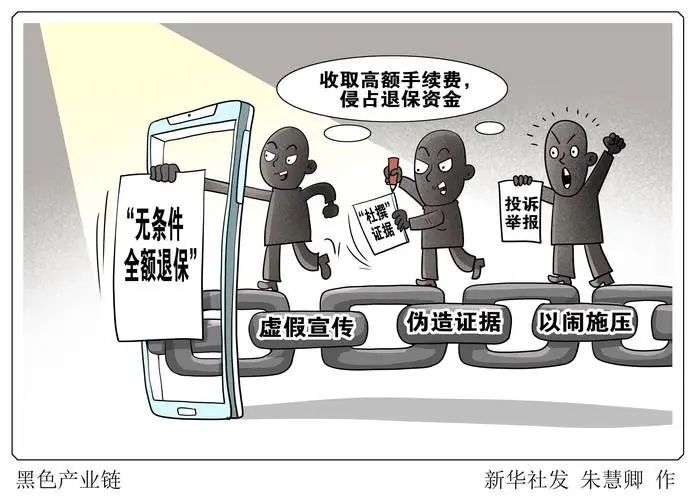 “新华视点”记者调查发现,一些不法分子以“代理退保”等名义,通过诋毁保险产品、承诺更高收益等手段,诱导消费者恶意投诉或举报保险机构进行退保,以此收取高额手续费,甚至侵占退保资金,逐渐形成一条黑色产业链,严重扰乱保险市场秩序,侵害消费者合法权益。