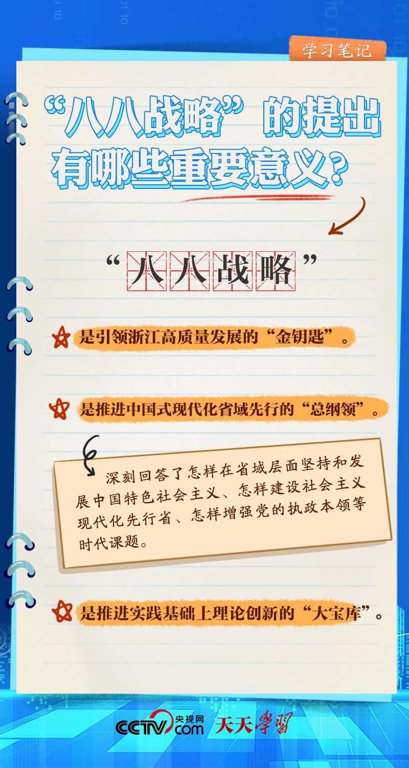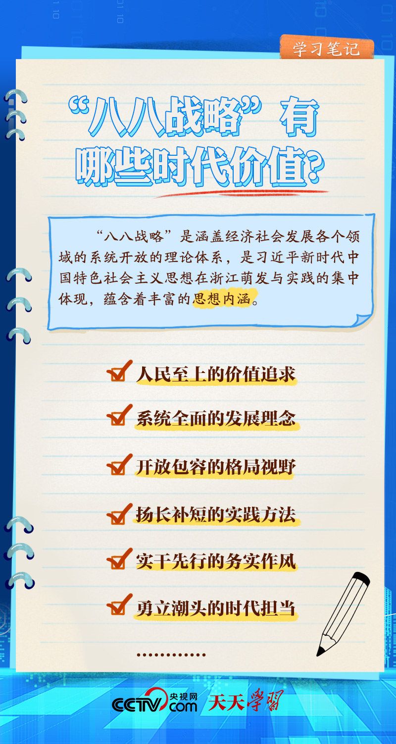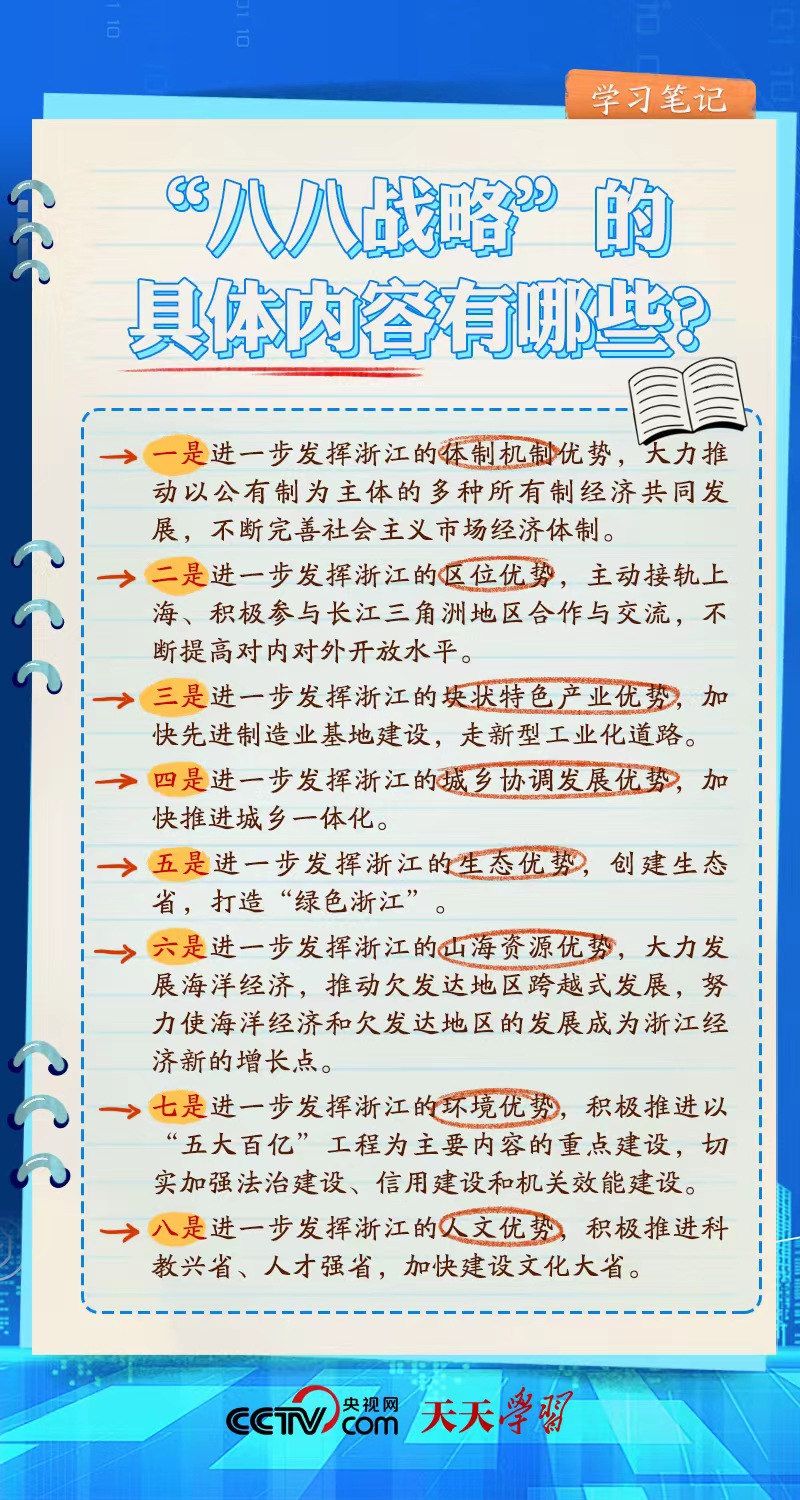 什么是“八八战略”?“八八战略”的时代价值有哪些?央视网《天天学习·学习笔记》带您一起了解。