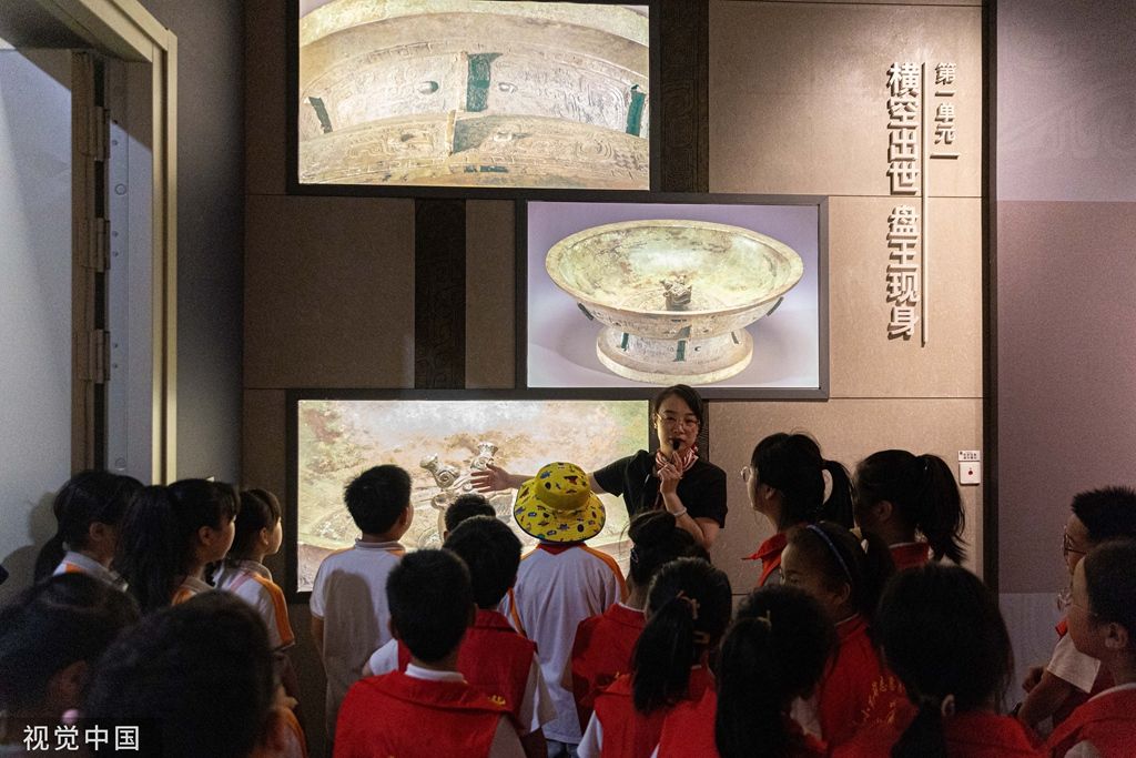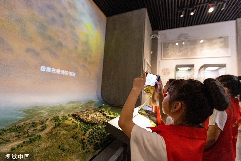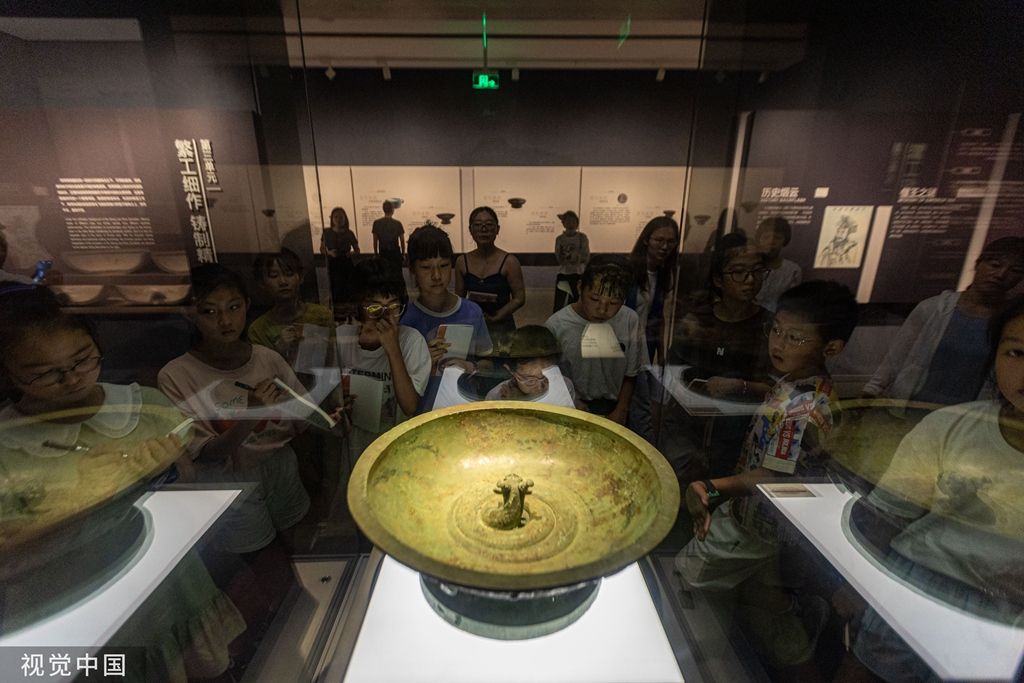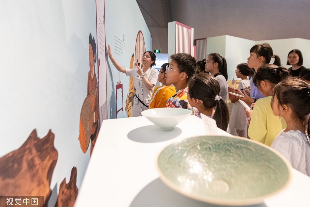2023年7月11日,浙江台州,温岭市博物馆内,孩子们近距离感受文物的魅力。