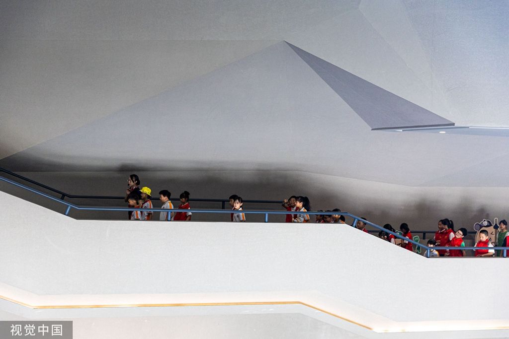 2023年7月11日,浙江台州,温岭市博物馆内,学生们正在观看展览。