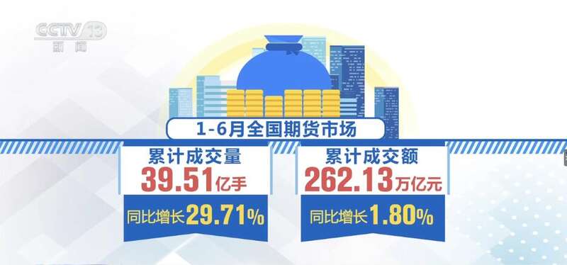 根据中国期货业协会提供的统计数据,1—6月全国期货市场累计成交量为39.51亿手,累计成交额为262.13万亿元,同比分别增长29.71%和1.80%。