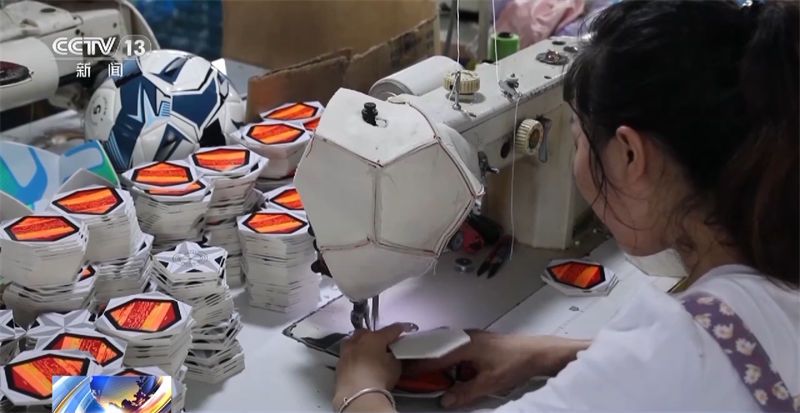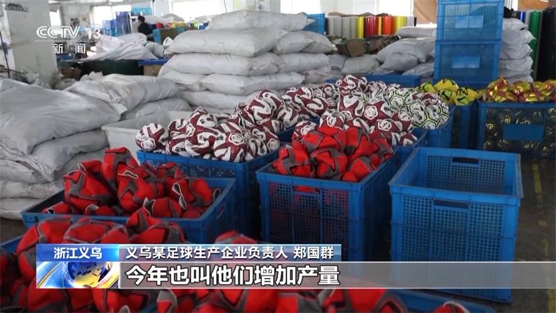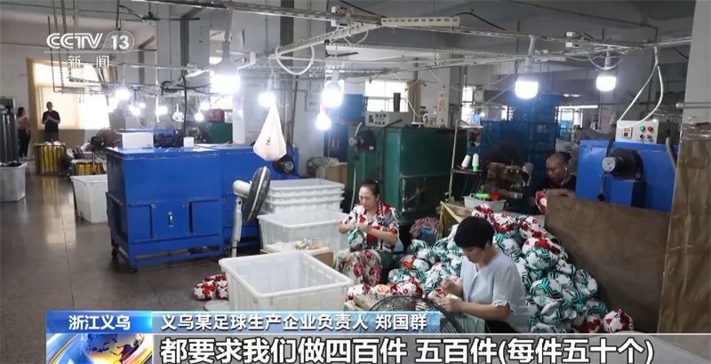 义乌某足球生产企业负责人 郑国群:义乌是个窗口,保持在这里,我们外省有一些加工合作工厂在那里,单子分流出去,往年工厂生产少的,今年也叫他们增加产量,因为单子消化不完。