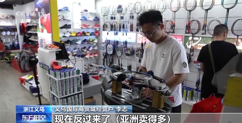 义乌国际商贸城经营户 李志:像我们这个球拍主要是卖到非洲和亚洲的,以前非洲是卖得比较多的,大概一个月能出到7000副左右,亚洲出到4000副左右,现在反过来了,亚洲卖得多。
