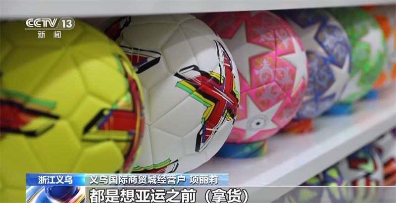 义乌某足球生产企业负责人 郑国群:今年新增了一些亚洲客户,由于亚运会的举办,亚洲客户像越南、菲律宾这些客户都过来采购,单子下得还挺多的,像每个客户单子下过来,都要求我们做四百件、五百件,每件五十个,因为我们生产能力有限,只能给他安排两百件、三百件,陆续给他出。