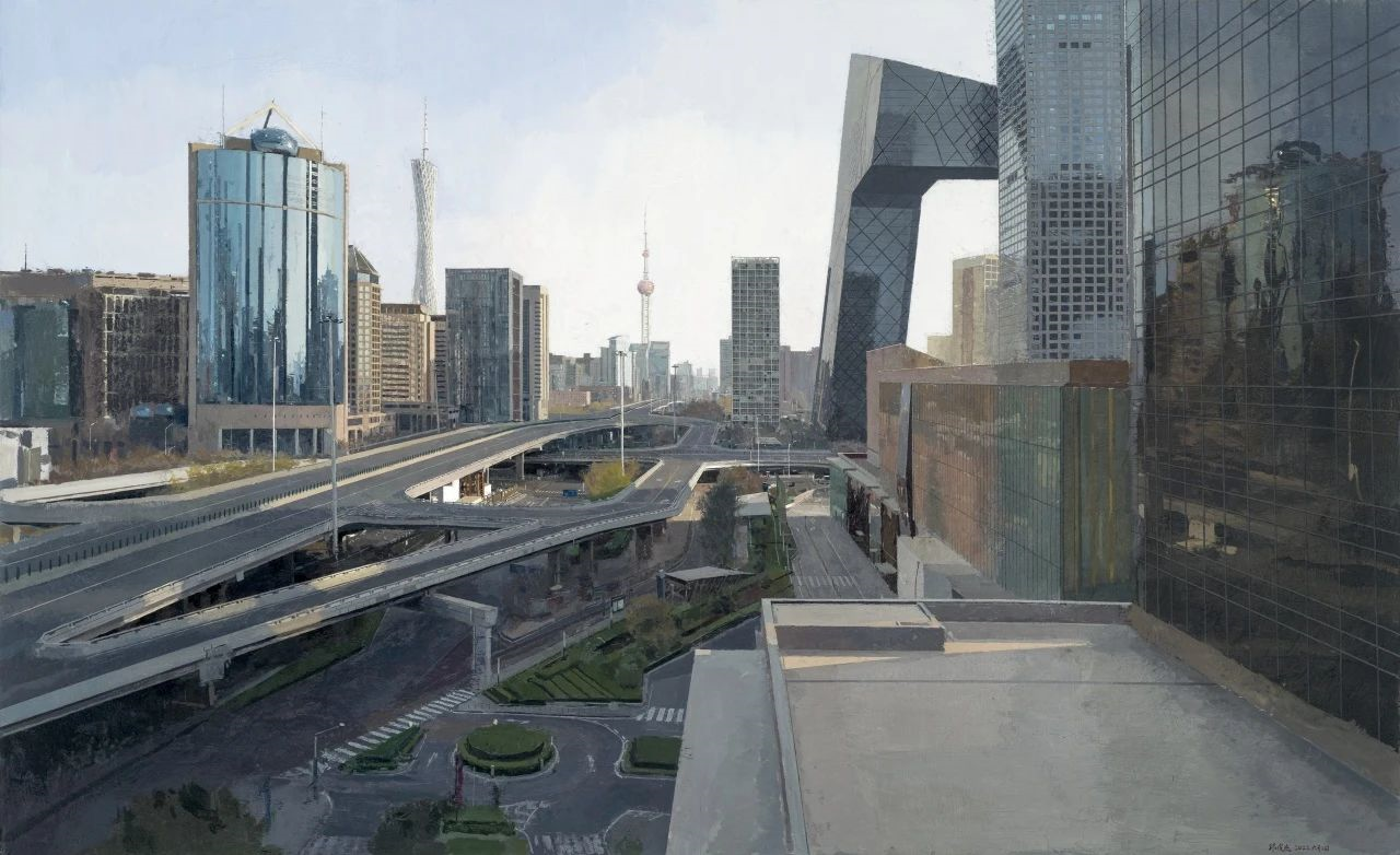 油画《一线城市》,作者邱俊杰,选自“蔚然生长”2023中央美术学院本科生毕业作品展。(中央美术学院供图)