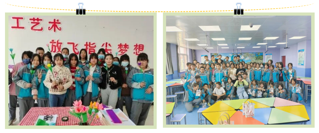 “我在同心县第六中学创设了‘巧手妙作’手工社团。利用每周二和周三课后服务的时间,带领孩子们利用皱纹纸、卡纸、扭扭棒等制作向日葵、玫瑰、收纳盒等作品。”李敏介绍,在团员们的推动下,孩子们的想象力从矮矮的木窗飞到更广阔的天空,不少孩子们性格也从一开始的害羞内向变得愈发活泼。