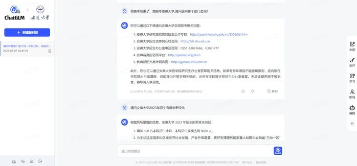 AhuGLM现在已开启内测,登录网址Univ.chatglm.cn申请内测,登录时选择“安徽大学”即可开始体验智能化的安大生活。