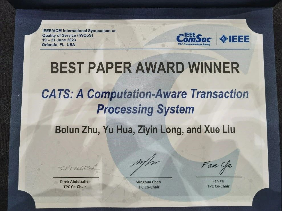 与麦吉尔大学合作在本次会议上发表的学术论文“CATS: A Computation-Aware Transaction Processing System with Proactive Unlocking”(CATS:面向主动解锁的计算型事务处理系统)