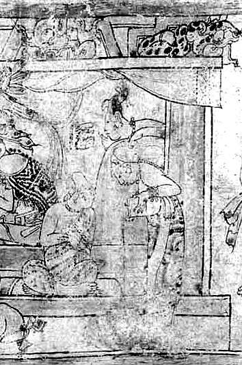 一个玛雅彩色花瓶上绘有一名女子正把巧克力从一个罐子倒向另一个罐子让它起泡。资料图片