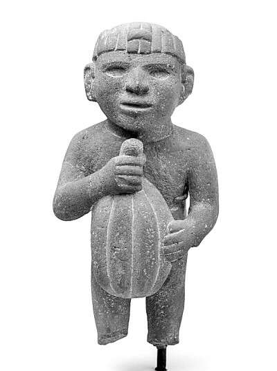 雕塑表现一个手拿可可罐的阿兹特克男子。资料图片