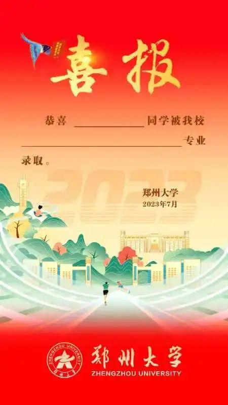 来自郑州大学的电子版录取喜报