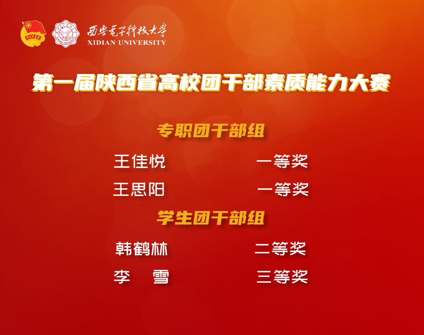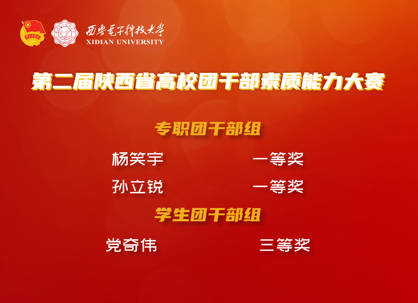 在往届陕西高校团干部素质能力大赛中我校参赛选手也斩获了许多奖项!