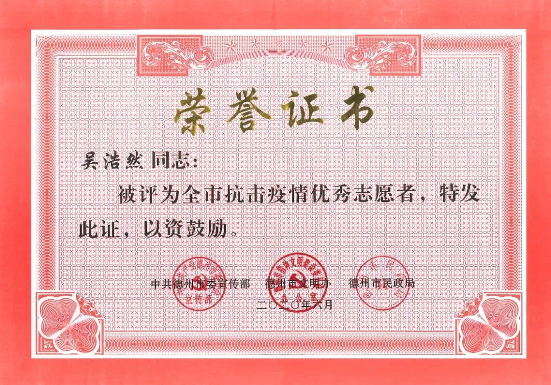 2021年9月,吴浩然任共青团宁津县委副书记,他聚力团干部全域提优、聚合团组织全域建强、聚焦团员全域培养、聚心党建全域引领,探索构建了“3+4+9+X”专职团干部体系,汇聚多方青年力量,打造“青年议事厅”,推进实施宁津县“双积双评”积分入团管理办法,扎实推进中学团校建设,积极探索“党建带团建”“党建引领网格化治理”,建立561个网格团支部,为社会治理注入青春力量,获评“宁津县政协履职优秀委员”。
