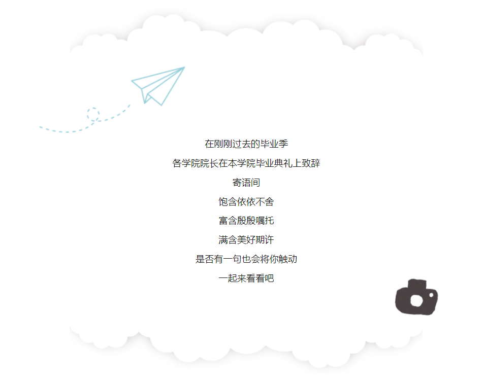 亲爱的同学们,你们是我们的“春华秋实”,你们的“毕业季”“花季”是我们学院的“收获季”。你们每一届毕业生就如同我们学院每一年的“毕业创作”和“毕业论文”,是我们学院完成的一幅美好的画和一张满意的答卷。