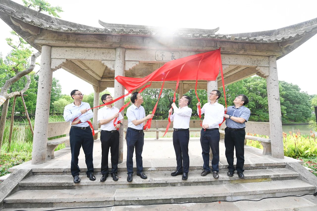 7月13日,上海交大植物园东扩暨七宝长亭搬迁落成仪式在闵行校区叔同路淡水河举行。校党委书记杨振斌,党委副书记林立涛,副校长蒋兴浩,党委常委、宣传部部长胡昊,植物园项目设计师、设计学院教授王云,以及学校主题教育领导小组成员,党委宣传部、后保中心等机关部处相关同志,农生学院师生代表参加落成仪式。